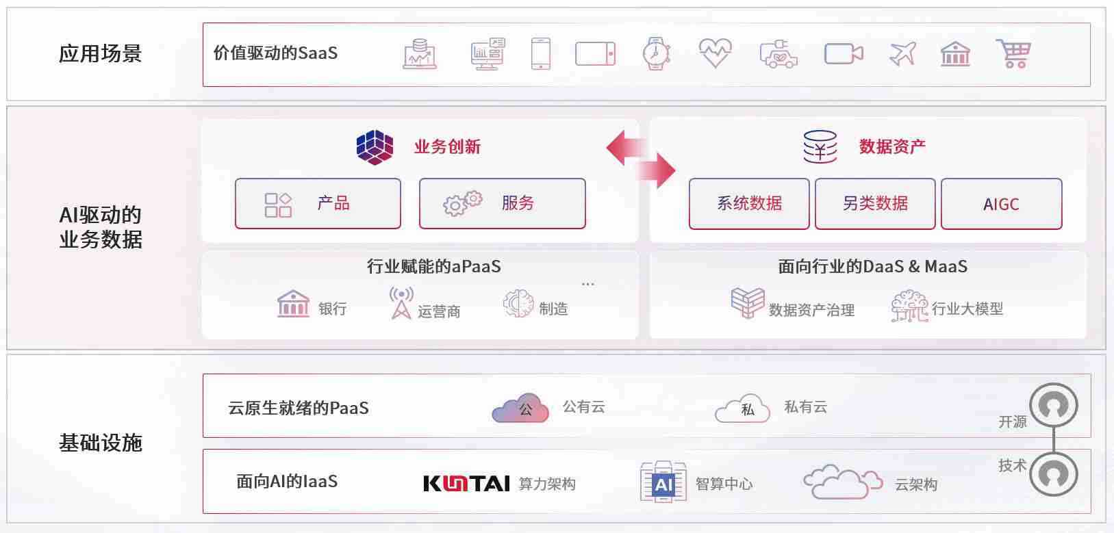 数字时代,,围绕企业数字化转型的关键要素,,,OK钱包数码开创性的提出数云融合战略和技术体系框架,,着力在云原生、、数字原生、、、、AI原生和信创产业上架构产品和服务能力,,,,为处在不同数字化转型阶段的快消零售、、汽车、、、、金融、、、医疗、、、、政企、、、教育、、运营商等行业客户提供泛在的敏捷IT能力和融合的数据驱动能力,,构建跨界融合创新的数字业务场景和新业务模式,,,,助力企业级客户建立面向未来的核心能力和竞争优势,,,,全面推动社会的数字化、、、智能化转型升级。。。。